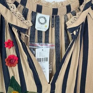 Anthropologie Akemi+ Kin Manuela Floral Embroidered Striped Top Size XS S Boho