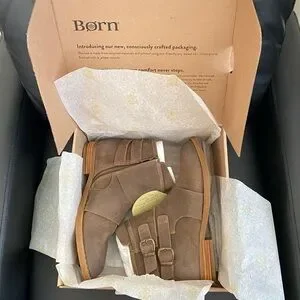 NEW Born Distressed Taupe Leather Ankle Booties Boots Brown Tan Women’s 8 M NIB