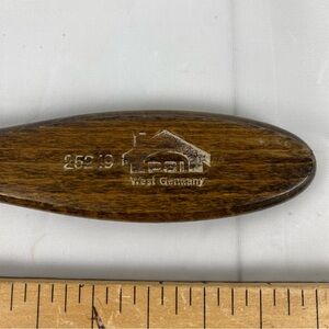 Beautiful wood handle with metal pins and orange cushion base. Classic mid-century German grooming tool. Solid construction and quality craftsmanship.