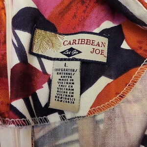 Carribean Joe Womens Large Floral Front Tie Wrap Dress Tropical Travel Casual