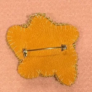 Elegant handmade and handcrafted brooch featuring intricate beadwork in pink, green, and gold. Perfect for adding a touch of elegance to any outfit.