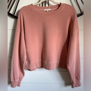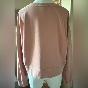 VINTAGE Z Supply salmon colored pullover, distressed, drop shoulder, crew neck, relaxed fit cropped sweatshirt. Everything you want from your favorite go-to top! Has 2 1/2” band of ribbing at hemline and cuffs. Treated in burn-out wash to achieve the soft worn-in feel. 100% cotton. Perfect for layering and shorter length works well with high waisted jeans or leggings. I realize cover pic is not exact shirt but as close as I could find to this vintage piece. Some pics show up pink but shirt is actually salmon.