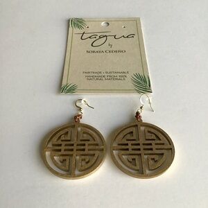 TAGUA Nut Medallion Earrings Asian-Style Matte Gold Open Work Lightweight NEW