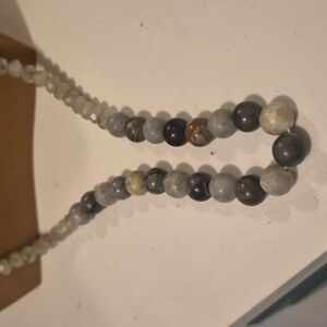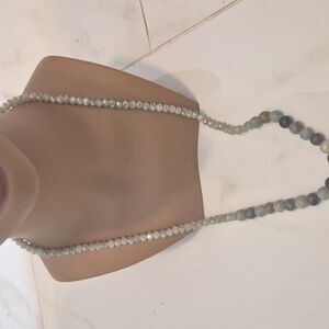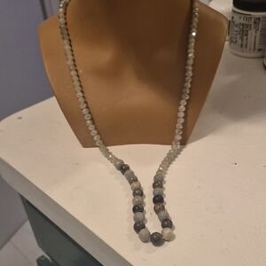 Vintage Picasso Jasper & natural faceted Agate Rondelle Beaded Long Necklace