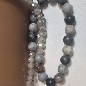 elegant beaded Picasso Jasper & natural faceted cream/white Agate Rondelle beads