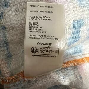 Features: Classic tie-dye print throughout, side tie detail, hidden zip closure, breezy linen blend