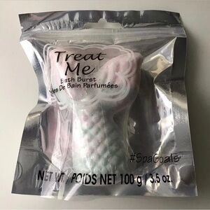 NEW and SEALED - SET OF 2 - Treat Me Mermaid Tail Shaped Bath Burst Bombs Spa Scented Bath Fizzies. Each is 3.5 oz. Pretty pastel shimmer.