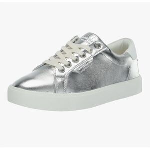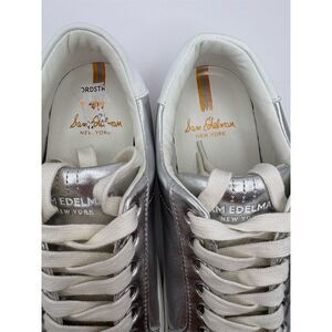 Keywords: Sam Edelman, Ethyl, women's sneakers, silver sneakers, casual shoes, leather upper, cushioned insole, durable outsole, lace-up sneakers, athletic style, new with tags.