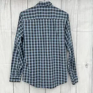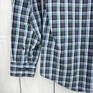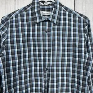 Calvin Klein SMALL (14-14.5) Mens Blue Plaid Non-Iron Fit Button Up Dress Shirt
