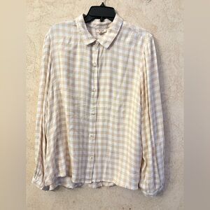 a.n.a Cream Plaid Button-Down Shirt(Length: 25”- Front, 26”- Back Bust 46”)