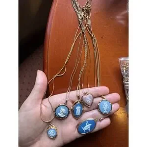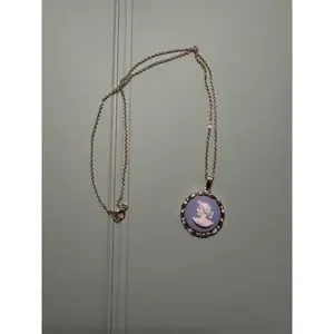 Keywords: cameo jewelry, jasperware pendant, gold tone necklace, vintage charm, classical design, elegant accessory, heritage piece, statement pendant, sophisticated style, gift for her, designer cameo, collectible jewelry