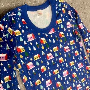 This adorable Hanna Andersson PJ set is a fun snowy cabin print on a rich winter-blue background. Made from Hanna’s famously soft, durable cotton with comfy stretch, perfect for movie nights, holiday photos, and cozy mornings with cocoa. Top + jogger-style bottoms with cuffs keep everything warm and comfy. Bonus- only wore once on Christmas Eve so they are LIKE NEW NEW!