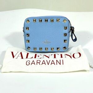 Valentino Garavani Mini Rockstud Leather Crossbody Bag Card Case Light Blue NEW