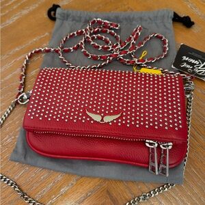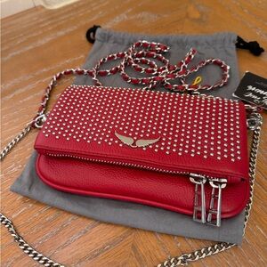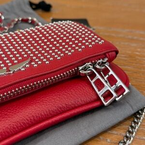 NWT Zadig & Voltaire Rock Nano Red Dotted Swiss Clutch Crossbody Bag