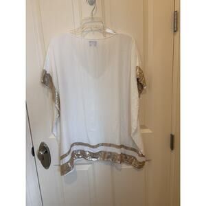 Mud Pie Top Women One Size White Gold Sequin Boxy Cap Sleeve V Neck Blouse