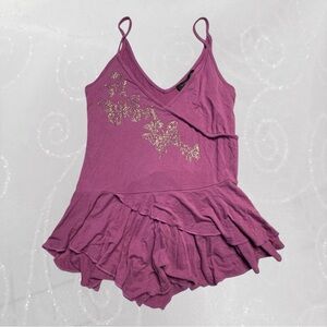 purple silence + noise y2k butterfly rhinestone cami (size s, fits s-m)