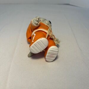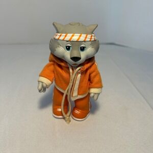 A whimsical character from yesteryear arrives to charm collectors and bring smiles to all! This adorable vintage wolf figurine, dating back to 1984, showcases a playful design. Dressed in a vibrant orange tracksuit with white stripes and a matching headband, this little wolf exudes retro coolness. The attention to detail, from the textured fur to the charming expression, makes it a delightful piece for any collection. Perfect for adding a touch of nostalgia to a shelf, bringing a smile to someone's face as a desk companion, or sparking imaginative play in a child's room.