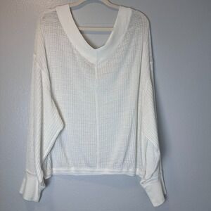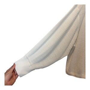 * Free People Size L Beige South Side V-Neck Waffle Knit Thermal Top