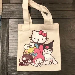 Adorable canvas tote bag featuring cute characters. Perfect for casual outings.