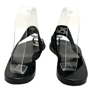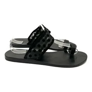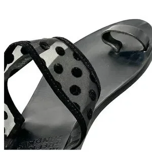 Ancient Greek Sandals Black Leather Sheer Polka Dot Toe Loop Slide Sandals Women’s 38 Authentic