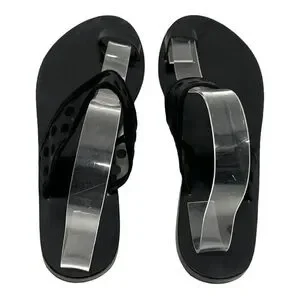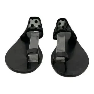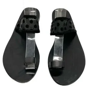 Ancient Greek Sandals Black Leather Sheer Polka Dot Toe Loop Slide Sandals 38