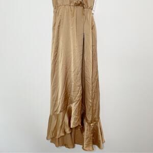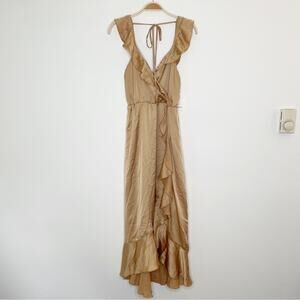 Show Me Your Mumu Samantha Ruffle Wrap Dress True Gold Luxe Satin Small