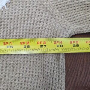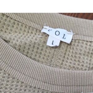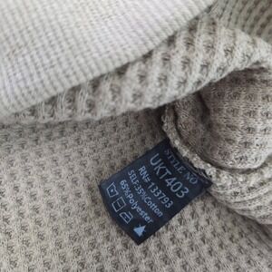 POL light tan Peace Sign Patchwork long sleeve boho hippie top Size Large