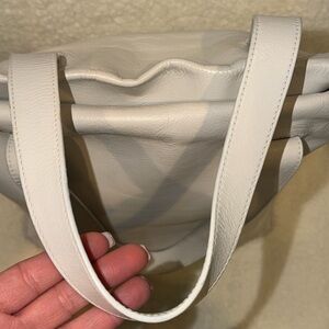 Sophisticated Loewe tote in luxurious white Lambskin leather. Perfect for versatile styling. Perfect for work, travel, shopping, or any other daily life activities. Do it all in luxury with this stunning tote.