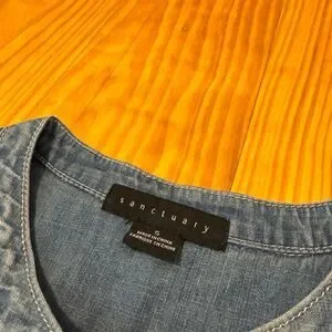 Sanctuary Denim Short Sleeve Sash Belt Blue Jean Mini Dress Women’s SMALL