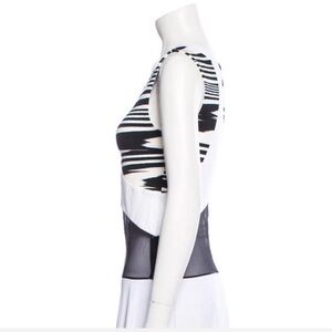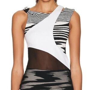Black and white Missoni print mesh top with asymmetrical design #y2kfashion #meshblouse