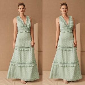 Part of a special collection from BHLDN. For the full assortment, visit BHLDN.com. This soft, flowing dress boasts ruffled details and a V-neckline, perfect for a backyard wedding or any sunny occasion.