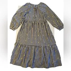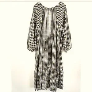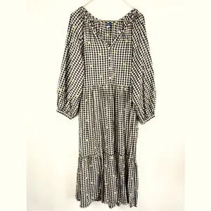 Old Navy Black White Gingham Daisy Floral Midi Swing Dress Size XXL Tall