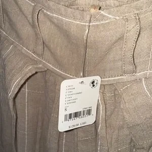 NWT Free People Lunar Cove Sand Combo Striped Wide Leg Cotton Pants Tan Small