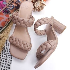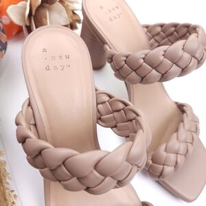 Tan Braid Weave Square Toe Mules Sz 7.5