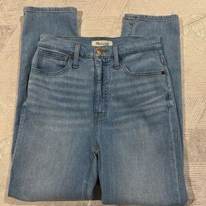 Chic light blue denim classic straight jeans from Madewell. Features classic stitching and button details. Ideal for layering.