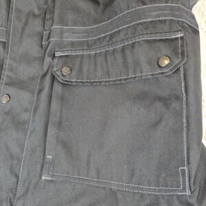 This jacket features a durable water-resistant shell with quilted insulation for warmth, along with multiple utility pockets for storage.