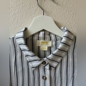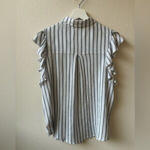 Chic button-down with ruffle sleeves. Classic stripes for versatile style.