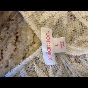 Sheer Xhileration top. Fringe along the hem. size large, EUC.