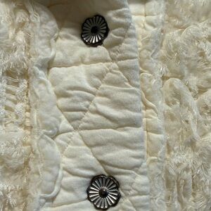 Women’s Boho Quilted Floral Button Front Cream Jacket. This would pair nicely with any POL Pants or other. It is beautiful. Soft and stretchy. NEW