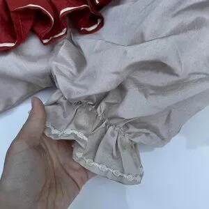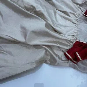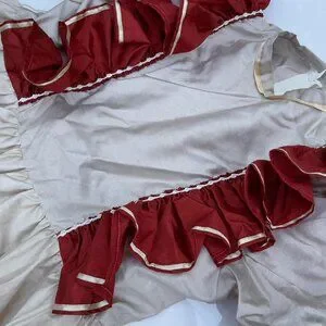 * Color: Light beige/stone with burgundy accents and floral print tiers