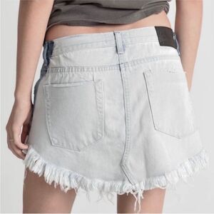 Super cute micro mini denim jean skirt by One X One Teaspoon. This brand is often sold on the Free People website. This is the 4040 low waist relaxed fit curved hem skirt. Raw fray edge hem. Pockets. Button fly. Two tone blue. Great condition! Women’s size 29 (8).