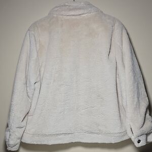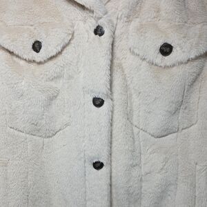 Soft teddy jacket with button front. Features chest pockets. Ideal for cool weather.