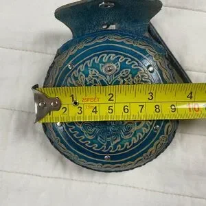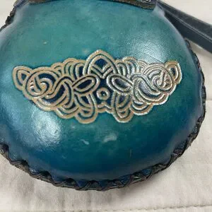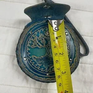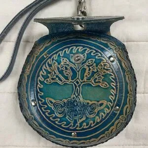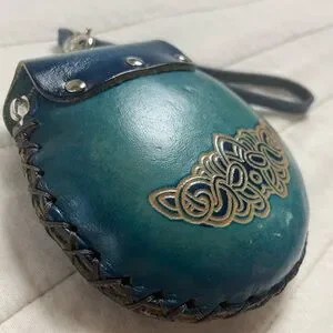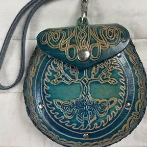 Elegant teal leather clutch featuring a unique Celtic design. Perfect for adding a touch of sophistication to any outfit.