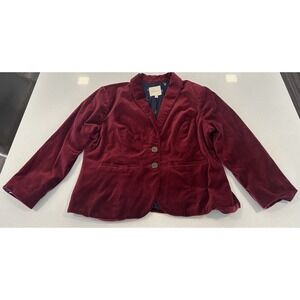 ModCloth Red Velvet Blazer Woman SZ XL Pockets & 2 Fancy Metal Buttons Bohemian