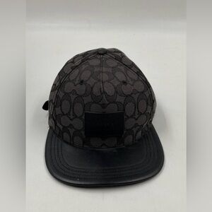 Coach Charcoal Black Cap with a Jacquard Leather Brim and logo printed pattern. Perfect for casual wear.