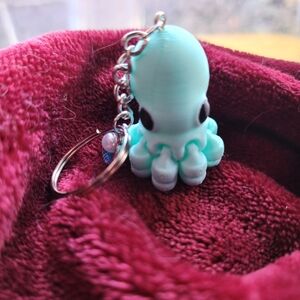 Adorable blue octopus keychain featuring a silver chain and ring. 3D printed. Includes a charming blue seashell charm.