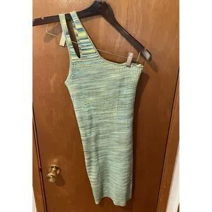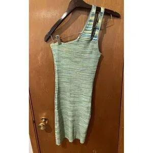 SIMKHAI Nila Cotton Knit Ribbed One Shoulder Bodycon Mini Dress Medium
