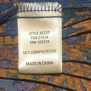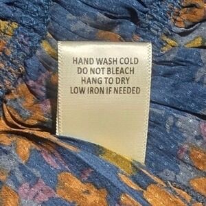 women's blouse NWT M Skies are Blue floral watercolor reminscent on micro pleat with tiny swiss dot pattern behind in blue purple bronze It has a tiny like Swiss dot pattern in the back or maybe overall. You know, polka dots, they're not textured. Barely seeable, it has flowers that are like very fall, long sleeve, one shoulder blouse, micro pleat with elastic waist 31" around neckline, sleeve length, 3.5" shoulder piece before the 25" sleeve length, 6" from that underarm to hem, 14 unstretched" across waist withgwell set elastic, 16" overall length measured from c enter back tag to lower back hem, on sleeveless side measures 15" from underarm to side hem, 100% polyester, hand wash, RN#102249, style 45327 Brand: Skies Are Blue