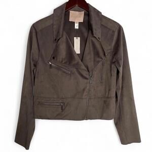 Hutch Anthropologie Faux Suede Moto Jacket Small Grey NWT Soft Lightweight Zip