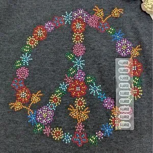 New Signorelli Girl's Long Sleeve Peace Sign Textured Rhinestone Shirt XL (14)
